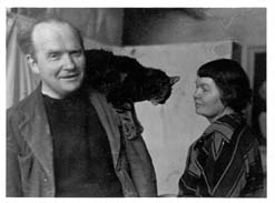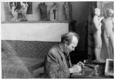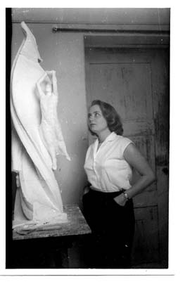 Christine vor dem Modell des Brunnens "Der Flugwille des Menschen" (~1950) |